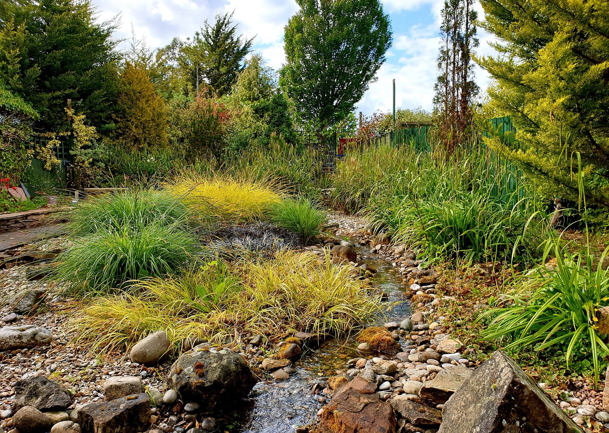 Walk over mini bridges, around the path and take in the peace and tranquillity that follows the soft flowing stream. Relax on one of our benches and listen to the birds chatting tunefully to each other.